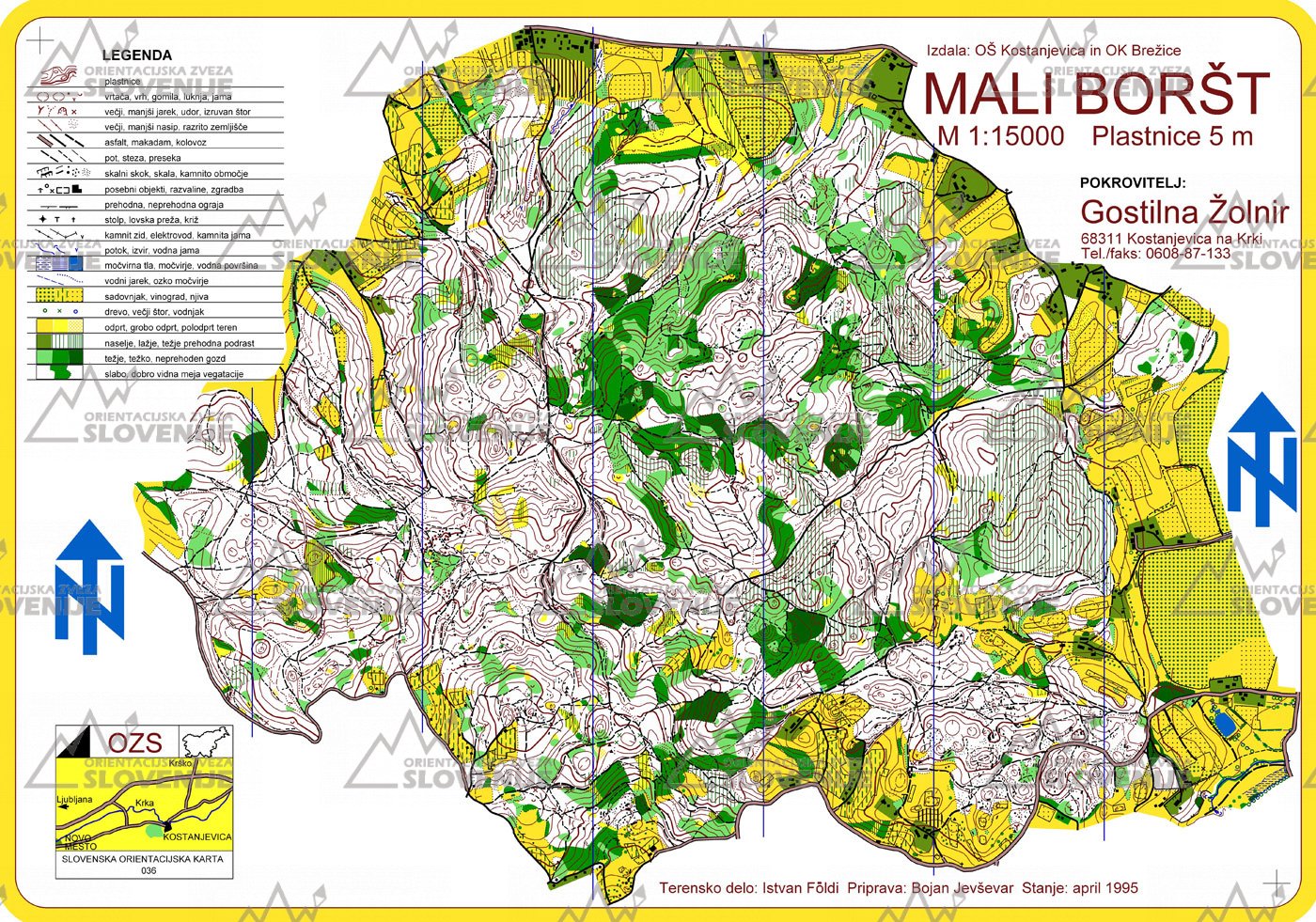 | 35 | Kostanjevica | ISOM | 1:10000 | IV. 1995 | 1.91km2 |