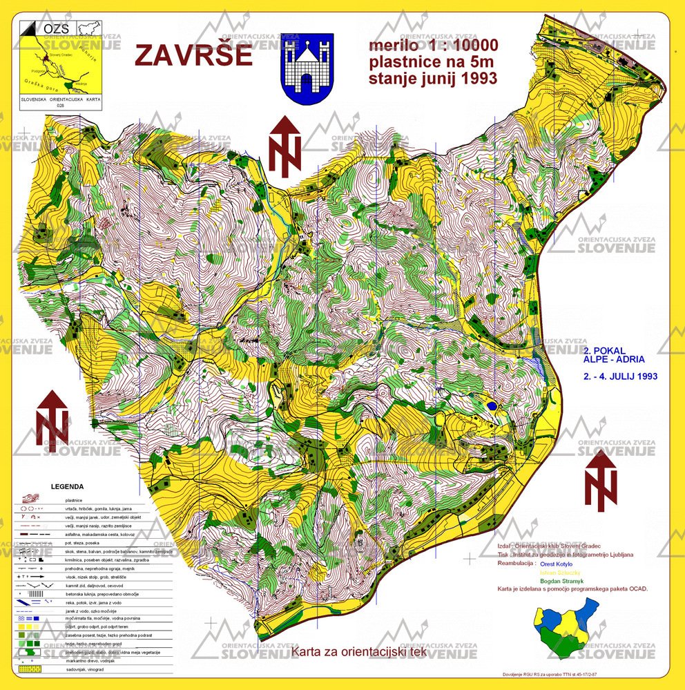 | 28 | Završe | ISOM | 1:10000 | VI. 1993 | 3.82km2 |